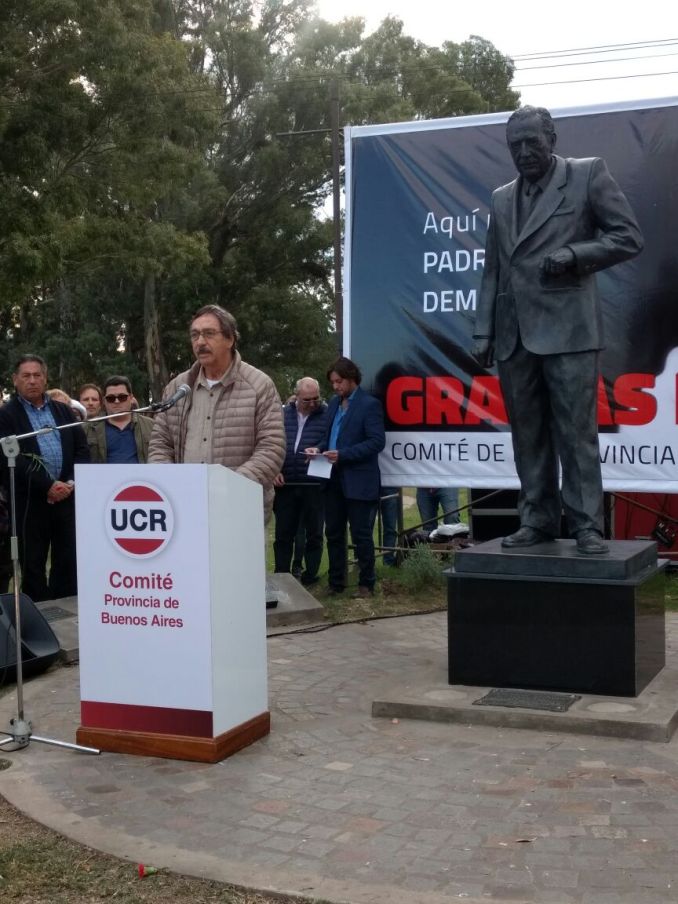 Tras leerse el acta de homenajes a Raúl Alfonsín del Comité Provincia de la UCR, se dirigió a los presentes Luis Brandoni, quien fuera un amigo muy cercano del Presidente chascomunense de quien se refirió como un gran demócrata destacando una anécdota que dió cuenta de su personalidad: el haber suprimido la presentación de «excelentísimo señor Presidente» por la de «Presidente de la República», como una manera de elevar el concepto de ciudadano.